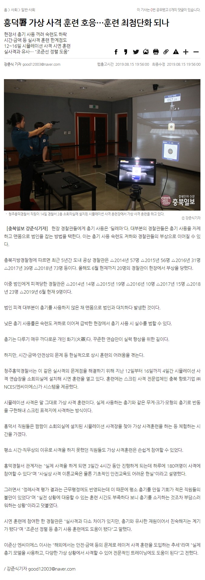 NEWS & INFO 제목[충북 일보] 흥덕署 가상 사격 훈련 호응…훈련 최첨단화 되나2021-08-13 15:10작성자ncesweb 원문 기사 보기 >> 목록 이전[충청 매일] 충북 기업, 아시아 최초 사격 시뮬레이터 개발ncesweb 2021-08-13-[충북 일보] 흥덕署 가상 사격 훈련 호응…훈련 최첨단화 되나ncesweb 2021-08-13다음[세계일보] 충북 향토기업 NCES, '국제게임전시회 지스타 2019' 참가ncesweb 2021-07-23 Powered by MangBoard | 워드프레스 쇼핑몰 망보드